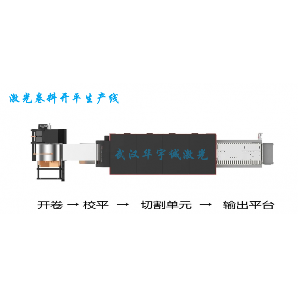 動(dòng)態(tài)高精高速全自動(dòng)激光開卷落料生產(chǎn)線,采用激光切割技術(shù)的開卷落料生產(chǎn)設(shè)備,由上料臺車、開卷機(jī)、校平機(jī)、伺服送料機(jī)、激光切割裝置、切割平臺、碼垛裝置、廢料處理系統(tǒng)、液壓氣動(dòng)系統(tǒng)及電氣控制系統(tǒng)組成。