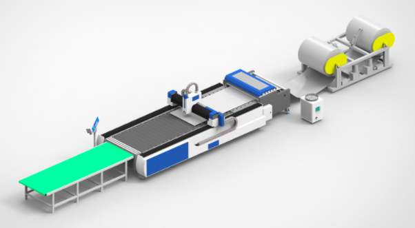 激光切割自動(dòng)旋轉(zhuǎn)機(jī)床(俗稱;全自動(dòng)卷料光纖激光切割機(jī)廠家,提供旋轉(zhuǎn)平臺(tái)光纖激光切割機(jī),全自動(dòng)卷料送料激光切割機(jī),卷料激光切割生產(chǎn)線 滾動(dòng)臺(tái)面光纖激光切割機(jī),自動(dòng)上料激光切割機(jī),風(fēng)管激光切割機(jī)自動(dòng)上料下料,通風(fēng)管道風(fēng)管激光切割生產(chǎn)線,風(fēng)管激光開料機(jī),通風(fēng)管道光纖激光下料機(jī),卷材全自動(dòng)激光切割機(jī)送料設(shè)備):包括卷料料架,校平裝置,激光機(jī)床床體、接料平臺(tái),自動(dòng)刀條旋轉(zhuǎn)組件;工作原理:首次入料卷料通過校平機(jī)校平后進(jìn)入激光切割平臺(tái)進(jìn)行切割,切割完成后校平機(jī)自動(dòng)送料,旋轉(zhuǎn)平臺(tái)自動(dòng)把切割完成的配件輸送到接料平臺(tái),校平機(jī)送料完成后系統(tǒng)運(yùn)行切割第二張排版圖料件,同時(shí)可進(jìn)行切好料件的編號(hào)收集工作,以此往復(fù)工作大大提高整體加工速度及效率。